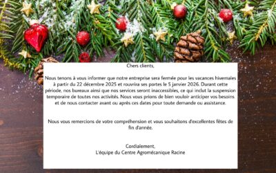 La nature est notre moteur. Racine Centre Agromécanique Actualité newsletter actuelle Noel 23, Déc 2025 Tronçonneuse Stihl 11, Avr 2025 Tondeuse Honda professionnelle 7, Avr 2025 Tondeuse Honda 4, Avr 2025 Robot Segway 31, Mar 2025 Robot Segway sans fil 26, Mar 2025 Déposez votre ancien sécateur électrique ou pneumatique de toute marque et bénéficiez d’une remise de Fr. 450.– TTC sur un nouveau sécateur électrique complet FELCO. Racine Centre Agromécanique